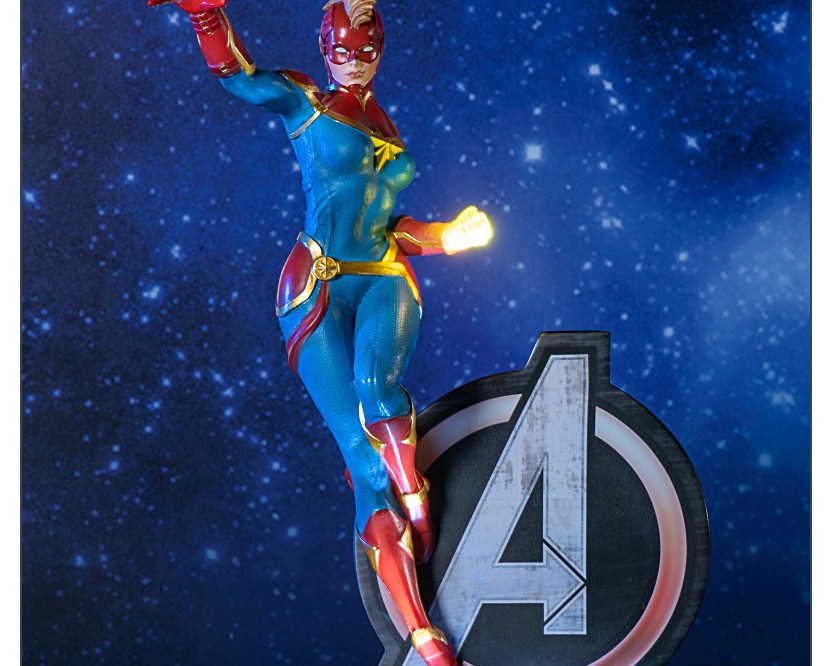 - Meticulously handcrafted and hand-painted, this illuminated sculpture showcases a 3-dimensional figure of Captain Marvel ready for battle with her cosmically charged hand ablaze, ready to deliver a photonic blast