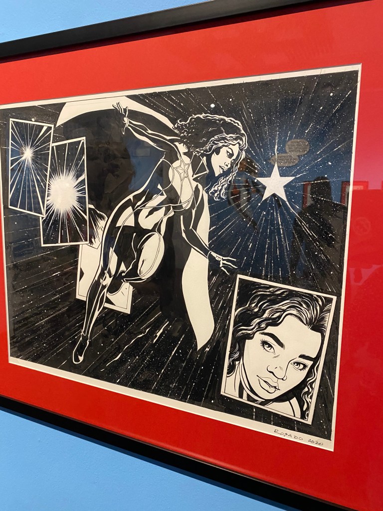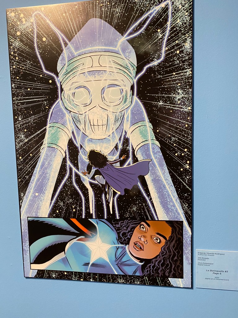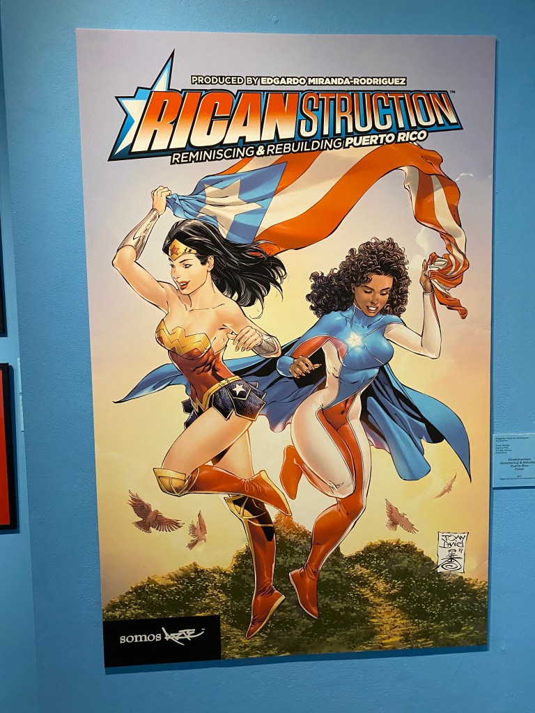 During my time in Puerto Rico I got to visit Chocobar Cortes in Viejo San Juan and got a special tour of the current art exhibit featuring the collaborative effort with La Borinqueña creator Edgardo Miranda-Rodriguez. As a part of its Guest Artists Program, Fundación Cortés has teamed up with the creator of the Afro- Latina Superhero for a solo exhibition celebrating Puerto- Rican culture and traditions while supporting the arts and education in PR. The alluring and inspiring exhibition will be up all year !
