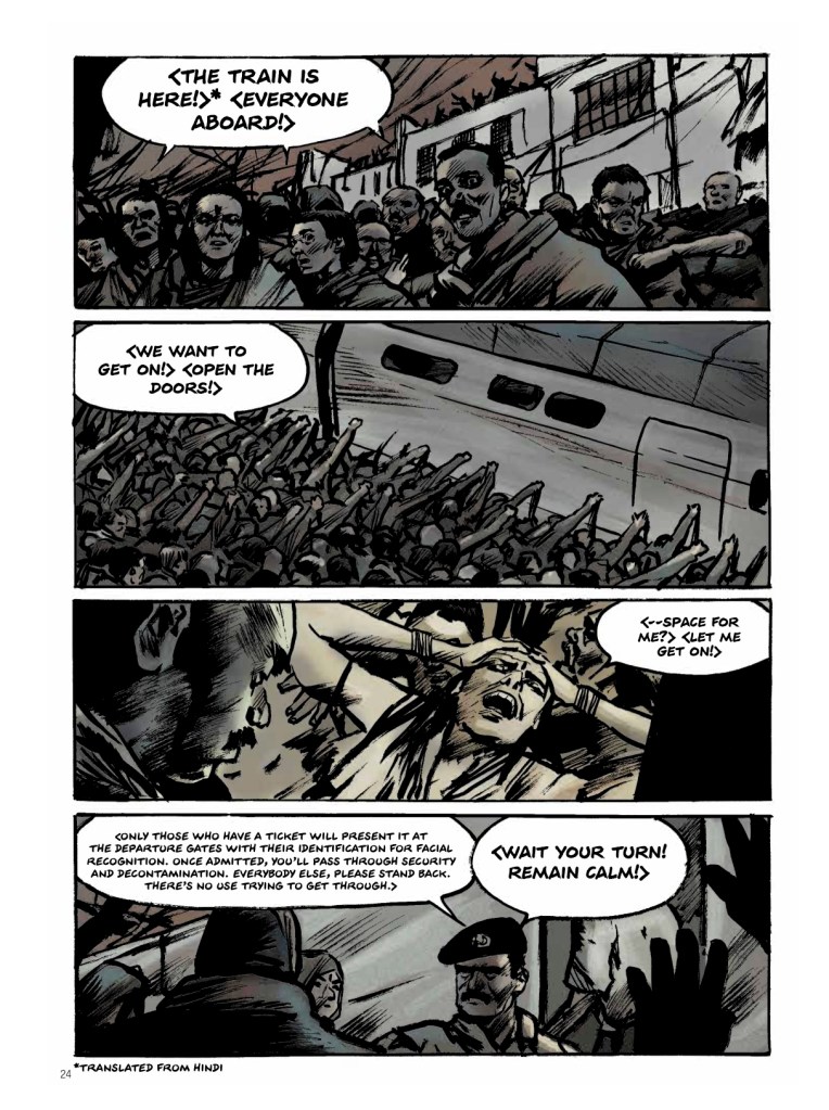 SNOWPIERCER: PREQUEL VOL. 2: APOCALYPSE; after the extinction event that caused the new ice age, the train Snowpiercer travels perpetually around the globe, with the last survivors of humanity learning to come to terms with their new reality.