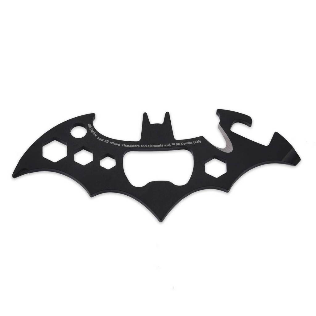 - Multi tool shaped like Batman’s batarang includes 6 different handy gadgets