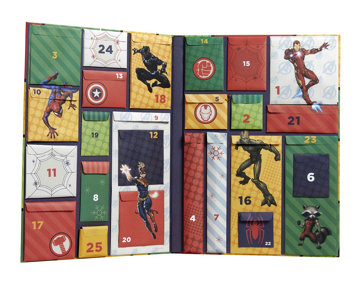 More than 30 surprises: From greeting cards to paper ornaments, buttons, booklets, and more, Marvel: The Official Advent Calendar is bound to excite fans with adorable souvenirs and holiday-themed keepsakes spread out over the course of 25 days.
