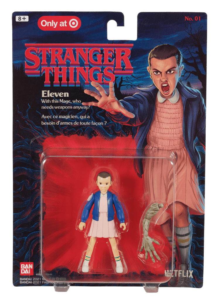 Bandai brings Netflix’s Stranger Things to life with these detailed 4-inch feature figures, paying homage to the 80โs. Fans and collectors alike can bring home their favorite characters from this series that captivated audiences and became a global phenomenon. This exclusive Target offering includes a build-a-figure: Collect them all to assemble the Demogorgon!
