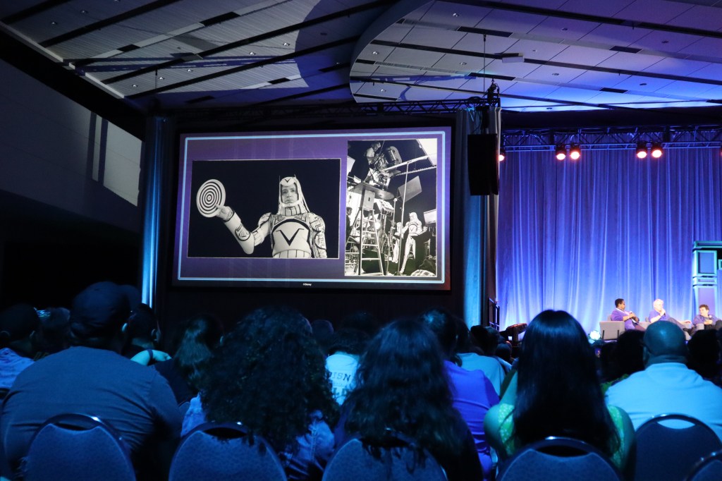 The original Tron film first released on July 9th, 1982 and was the first film to feature the combination of 3D CGI and live-action! It was amazing hearing the filmmakers and panelists discuss the nostalgic behind-the-scenes stories of how the film came to life. As we listened to the intriguing stories the monitors showcased original concept art, behind the scenes photos, a deleted scene and historical snapshots, including the original Hollywood historic Chinese theater premiere!