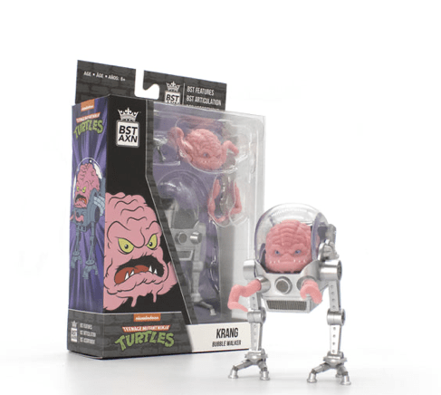 Soldiers. After a bizarre incident stripped him of his reptilian body and reduce him to a brain-like form, he was exiled to Earth. Krang allied with The Shredder, who built him an android body in exchange for technology that would assist him in conquering the world. In this 80’s tv series version, Krang has lost use of his android body and is forced back into this bubble walker. Bubble pod opens so Krang can be removed and posed on his three-pronged stool. Interchangeable tentacles can be added once out of the bubble walker.