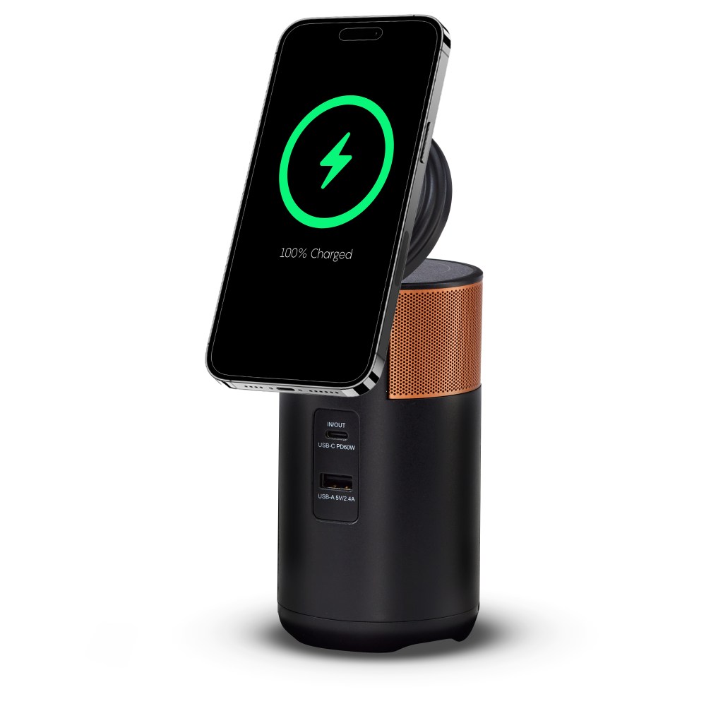Power phones, tablets, laptops—any small devices you need—for work and life. Lightweight and compact, the M100 features a tiltable phone holder with wireless charging and a second wireless charging platform underneath the lid. It comes with a charging dock ($39 value). You no longer need to be tethered to the wall now that you have portable power and a phone holder for your work and leisure activities. Power the possibilities.