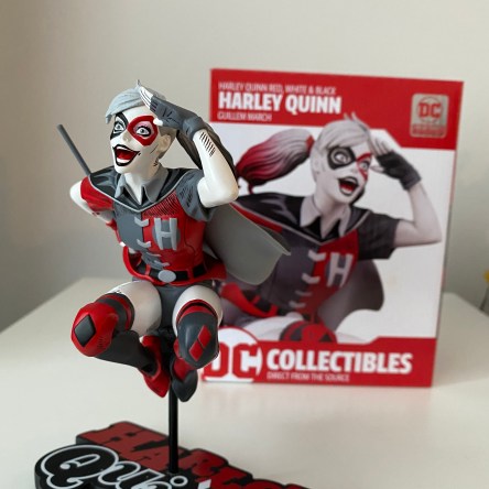 HARLEY QUINN RED, WHITE & BLACK: HARLEY QUINN BY GUILLEM MARCH STATUE Based on the art of Guillem March Sculpted by Jonathan Matthews Ever wondered what Harley Quinn would look … Continue reading HARLEY QUINN RED, WHITE & BLACK – Gotham Geek Girl – DC Direct Unboxing